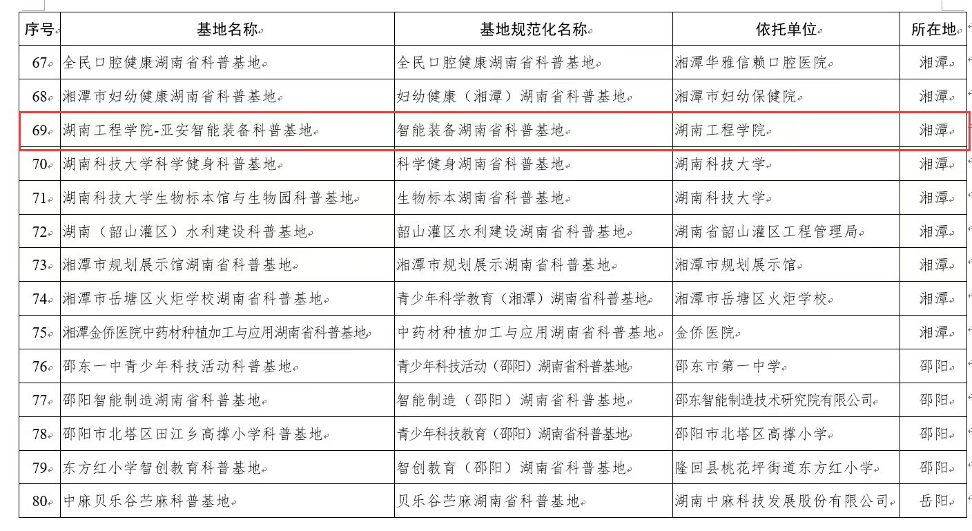 5月23日,湖南省科技厅公布湖南省省级科学技术普及基地备案、培育及取消名单,bevictor伟德国际王高升老师牵头申报的“伟德国际唯一官网亚安智能装备科普教育基地”成功备案“智能装备湖南省科普基地”,成为公司首个省级科学技术科普基地。