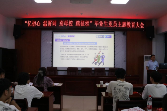 魏克湘以“忆初心 温誓词 别母校 踏征程”为主题给毕业生党员上了离校前“最后一堂党课”。他从跌宕起伏、奋勇争先的党史,到人文与科技交融的湘潭地方史,再到开拓创新、不断发展的校史三个方面向毕业生传达深深的爱国、爱潭、爱校之情。他从当前制造业发展局势出发,结合全国劳动模范黄祥全、湖南省优秀老员工党员曾浩和湖南省最美老员工刘毅等员工和员工的先进事迹勉励2023届毕业生党员勇担时代重任,为祖国建设事业贡献出青春力量。