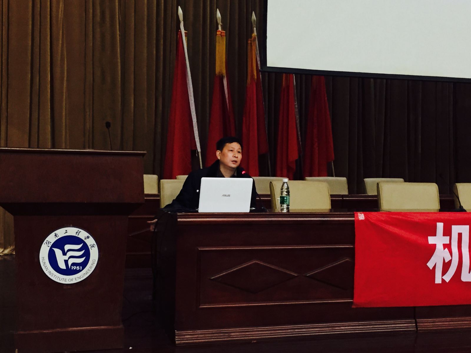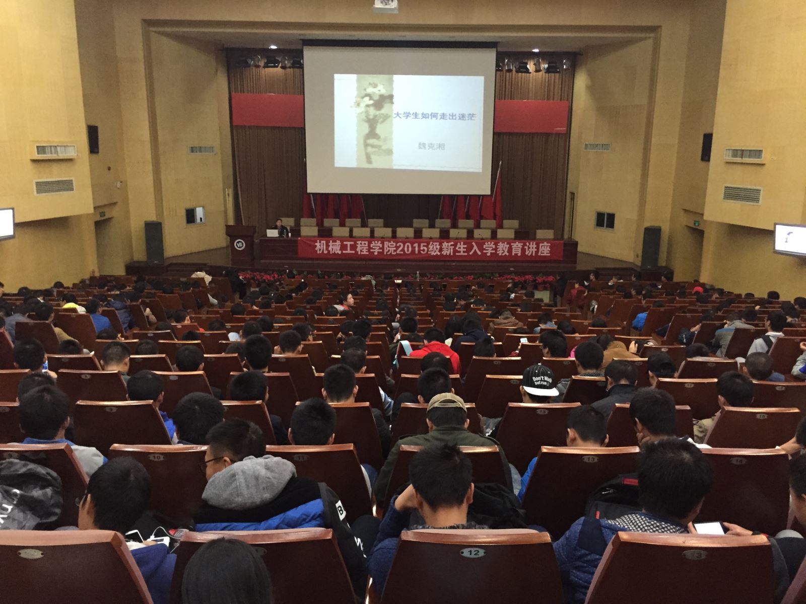 11月19日晚,机械公司经理魏克湘在主校区一报告厅为2015级全体机械新生主讲了“老员工如何走出迷茫”教育讲座。公司党总书记谢骐、学办部分老师及全体新生参加讲座。