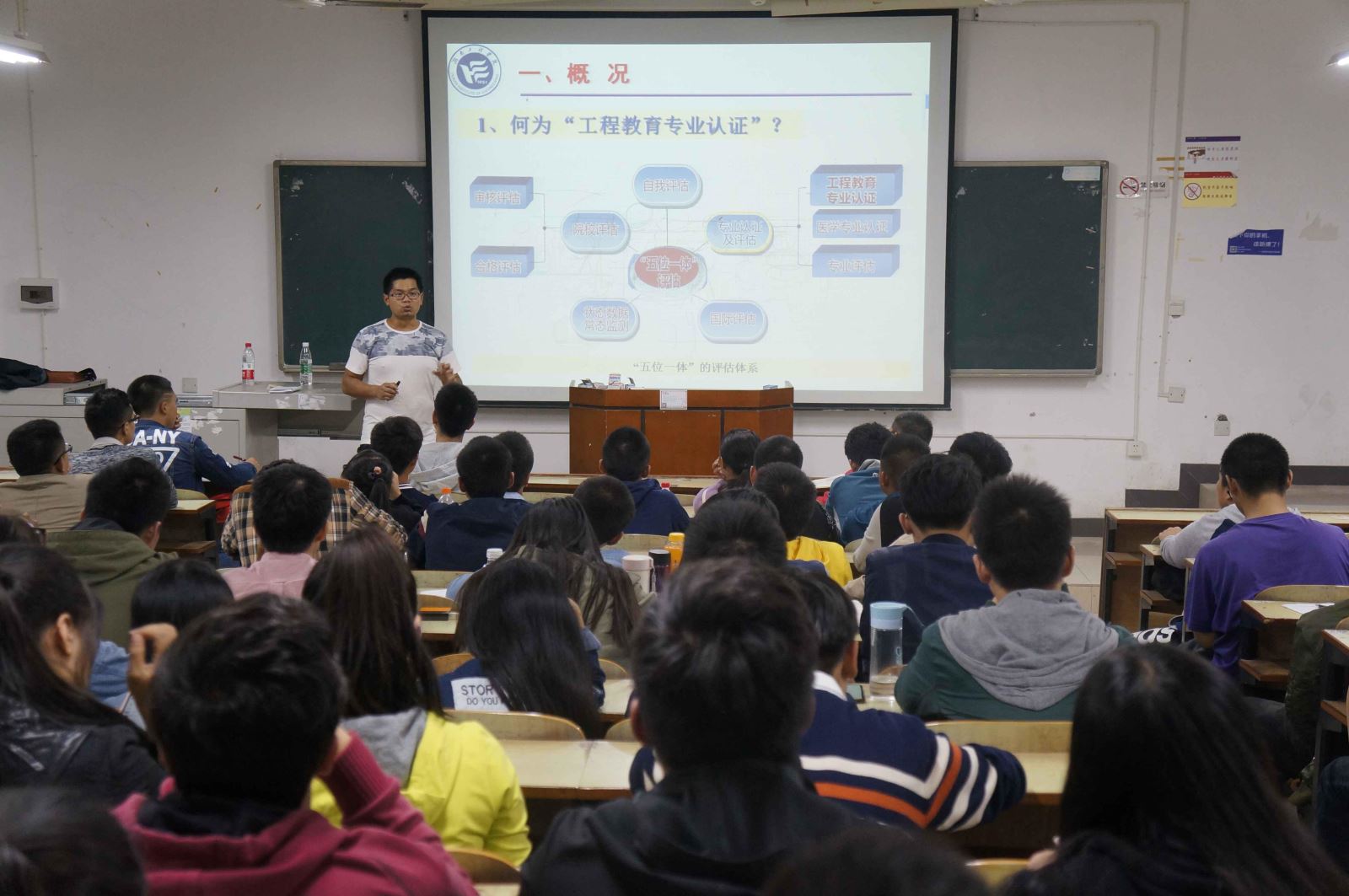 讲座上,朱云首先对工程教育专业认证的历史发展、内涵与特点、认证程序、开展工程教育专业认证的意义及近几年认证情况进行阐述。他指出公司严格遵循专业认证三大理念,即“员工中心的教育理念”、“产出导向的教育取向”、“持续改进的质量文化”。朱云说到,公司办学要以员工为中心,将培养目标与毕业要求作为导向,通过课程体系、团队队伍及支持条件来实现教育目的。他认为,在这一理念下,公司与员工都要明白与思考“员工会做什么”、“员工该做什么”、“员工能做什么”三大问题。随后,朱云为大家宣读《工程教育专业认证学习辅导资料》,并对里面相关专业知识进行详细讲解。最后,他希望各位同学以强烈的责任、感饱满的热情和高度的自觉性迎接专业认证的迎评工作,以主人翁意识和良好姿态接待认证专家的检查,并在班级上积极做好宣传工作。
