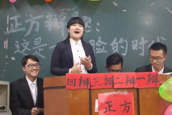 本场辩论赛以“这是不是一个看脸的时代”为主题。正方以“看脸是人的本能”开篇立论,从人性、社会现象出发进行论证。反方则分别从“社会更认可能力”“实际生活中外貌只能作为加分项”等方面展开深层次剖析,步步反击。两方辩手妙语连珠,将比赛逐步引入高潮。而比赛中最精彩的环节是自由辩论。面对反方的旁征博引,正方辩手在巧妙地化解了对方进攻的同时又提出了极具说服力的论据,使得观众热情高照,双方在攻和守的方面都展现出了强劲的实力。最后,辩手们做出总结陈词。他们凭借良好的风范、出众的口才、敏捷的思维征服了现场的观众,赢得阵阵掌声。