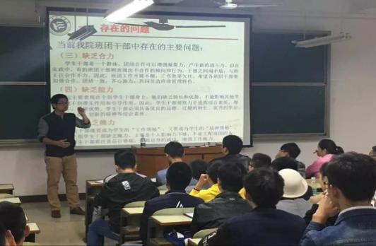 讲座上,朱云首先对团学会的工作职责进行定位。他指出,班团干部是一支服务型队伍,全方位完善自己,全心全意为同学的成长成才服务为员工干部之宗旨。随后,他对公司班团干部中存在的问题进行归纳,他指出缺乏活力、动力、合力与魄力是目前最严重的问题。针对这些问题,朱云建议大家在工作中要注重沟通与交流,学会自主思考与创新,并及时做好工作总结与反思。最后,朱云希望每一位干部要进一步提升自己的思想素质,不断探索工作方法,积累工作经验,带着表率意识与责任意识全心全意为全院师生服务。