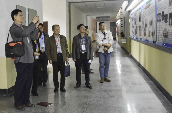 专家陈清利和毕大森一行察看图书馆文化长廊