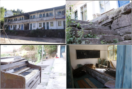 在层层大山深处,有这样一栋两层小楼,房间里堆满了木柴、废旧的塑料瓶等杂物,其间散落着几张桌椅,屋外的空地上是一台破旧的风琴。一把锈迹斑斑的大锁把通向二楼楼梯的大门锁死,从楼下所见的,只有破败的窗楹和爬满青苔的墙壁。若不是二楼护栏外隐约可见的“省物价局希望小学”几个字的轮廓,也许你都不会想到,这栋90年代建筑风格的破旧楼房会是一所公司。