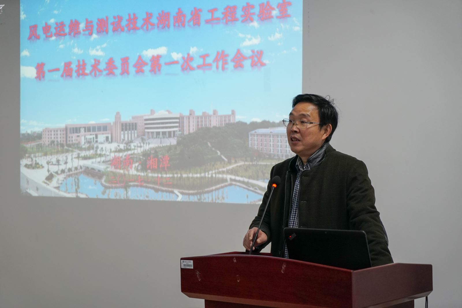 刘国繁致欢迎辞,他介绍了公司的办学历史、基本情况,并着重介绍了公司围绕风电产业三个科研平台——风电装备与电能变换协同创新中心、风力发电机组及控制湖南省重点实验室和风电运维与测试技术湖南省工程实验室的建设情况。他指出,实验室的设施建设与管理是衡量一所高校综合办学实力的重要指标之一,公司始终重视实验室的建设。宁立伟对工程实验室第一届技术委员会的成立表示祝贺,并对各位专家的大力支持表示感谢。罗毅平宣读了工程实验室技术委员会委员的聘任文件,刘国繁为各位专家颁发了工程实验室技术委员会委员聘任证书。