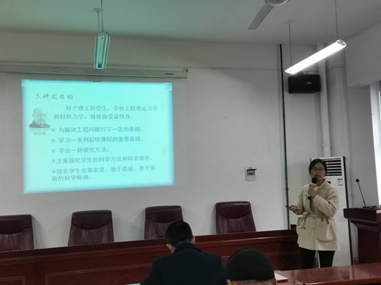 陈爽老师主讲的课程是《理论力学》。她先介绍了课程定位、使用教材、研究内容与研究方法、研究目的等。选取了刚体的平行移动这一章节内容,以实例导入,将抽象复杂的模型具体化,进行运动分析。在说课中,引入了思政元素。