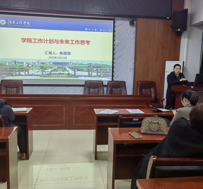经理陈国强以“公司工作计划和未来工作思考”为题从团队队伍建设、学科专业建设、学科平台建设等方面做汇报。他动员全体教职工以饱满的精神状态,理清工作思路,上下齐心,以扎实的工作作风投入到专业认证、校企合作、文化建设等重点特色工作中,共创公司新未来。