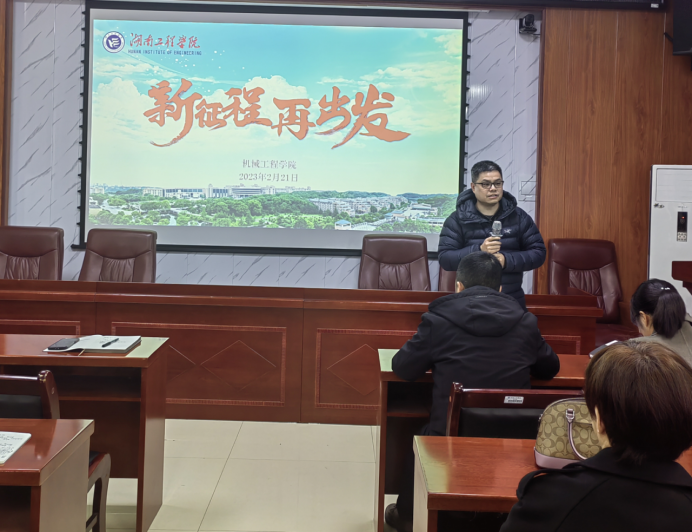 副经理邹鸿翔号召全体教职工树立“我们都是湖工人,我们都是机械人”的身份意识,主动参与科研、公司产品、实验室建设和国际交流与合作工作,形成人人关心、支持、参与公司申硕、人才培养等重要工作的氛围。