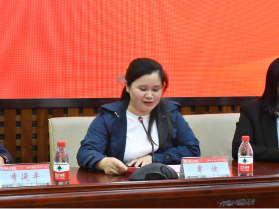 仪式正式开始,覃波以“感恩·传承”为题致辞,她代表公司向想的·宁波瑞狄安股份有限公司董事长欧阳雅鸿先生以及易丽虹女士关心母校、回馈母校的善举表示诚挚的感谢。她希望受资助的同学把想的这份温暖转化为“报效祖国、服务社会”的行动力量。