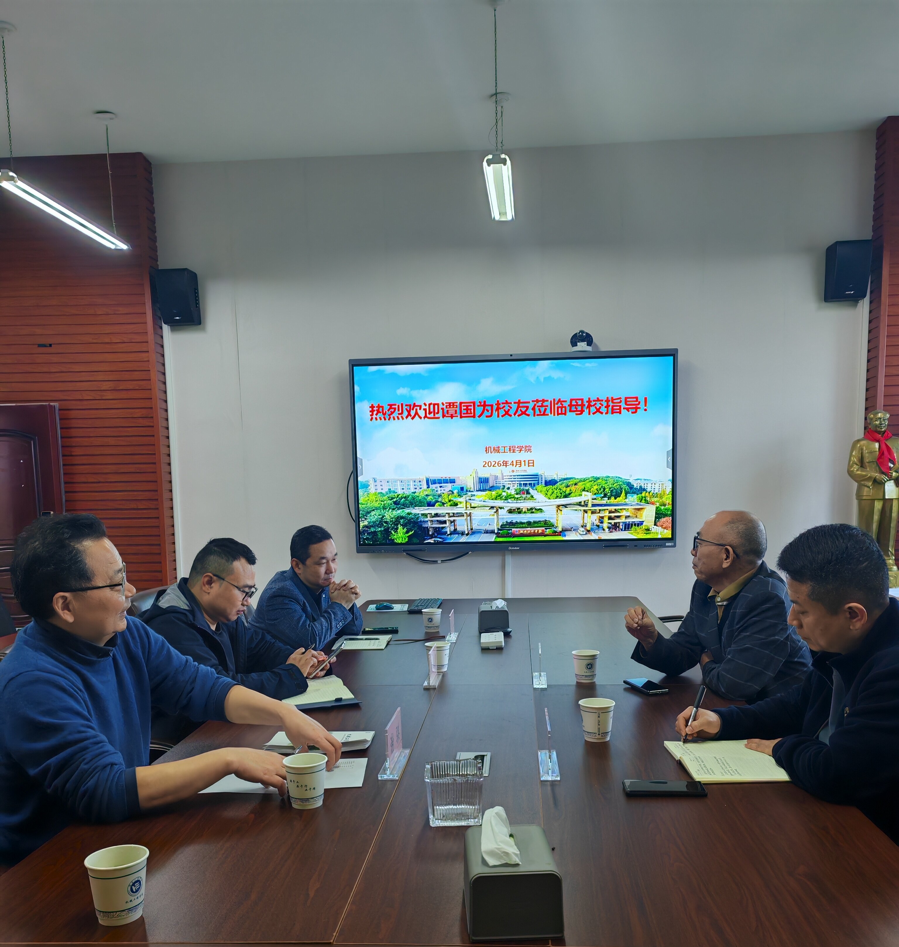 4月1日,公司东莞员工会会长、bevictor伟德国际9402班员工谭国为应邀重返母校,在bevictor伟德国际311会议室参加座谈交流。员工办主任张宏,公司党委书记、经理邹鸿翔,党委副书记李欣以及谭国为在校期间的班主任等教师代表出席座谈。