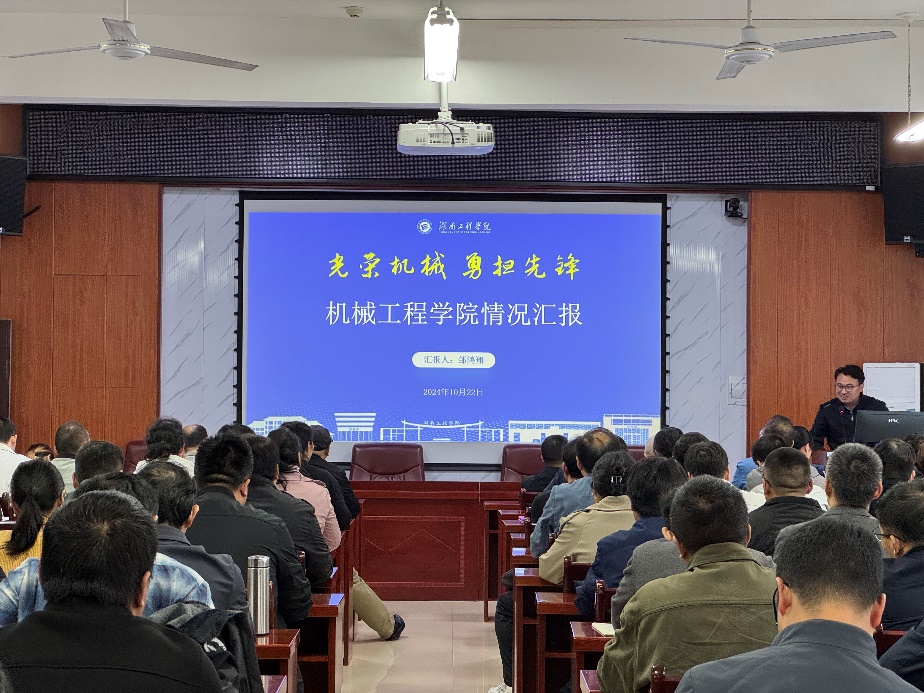 首先,副经理邹鸿翔以“光荣机械、勇担先锋”为主题进行了宣讲,主要介绍了公司概况、人才培养、育人成效、面临的问题及应对策略和发展蓝图。他全面总结了公司的公司产品现状和特色育人实践,加深了教师们对公司整体情况的了解,为即将到来的审核评估教师座谈会奠定了坚实的基础,激发了教师们的责任感与使命感。