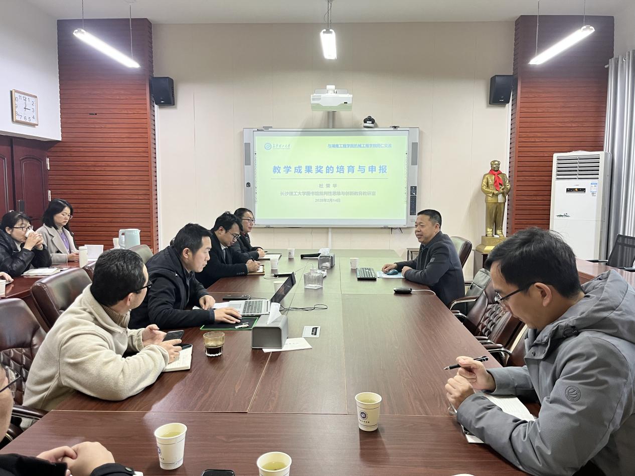 为进一步推动2025年教学成果奖申报的准备工作,bevictor伟德国际于2月14日邀请了长沙理工大学图书馆馆长杜荣华教授来院专题指导。公司党委委员、副董事长魏克湘,全体院领导及部分教师参加了指导会。